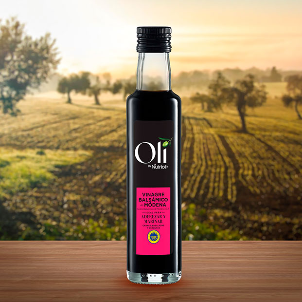 El vinagre balsámico de Módena de Oli de Nutrioli tiene un origen italiano, específicamente de la ciudad de Módena. Cuenta con certificación de Indicación Geográfica Protegida (IGP).