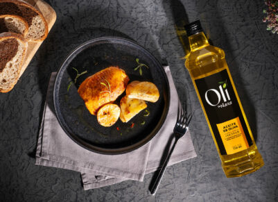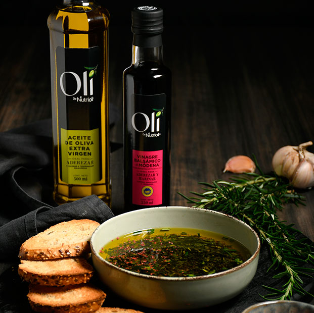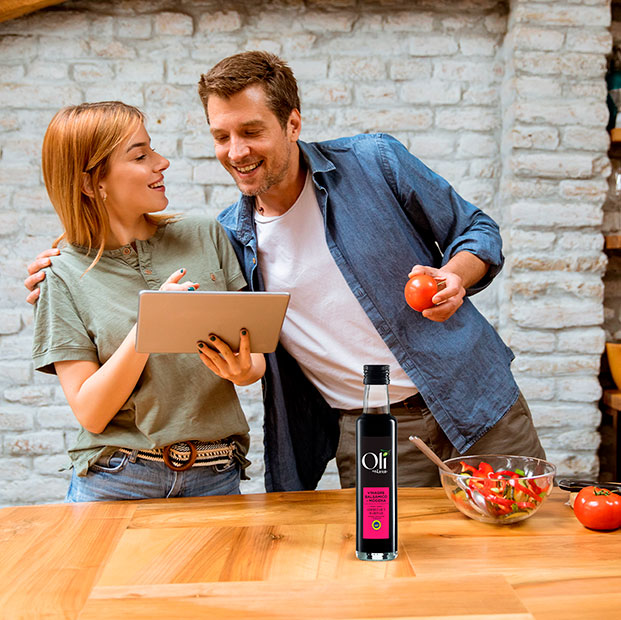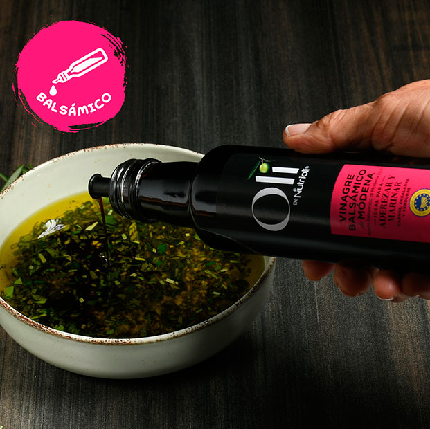 Oli Vinagre Balsámico es ideal para aderezar ensaladas, y resaltar verduras panes y quesos; marinar carnes y pescados.