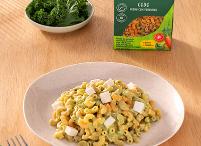 Fusili en Salsa de Calabacita, Kale y Queso