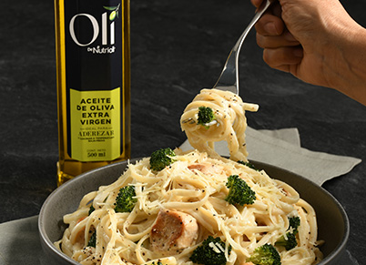 Pasta Alfredo con pollo y brócoli